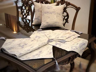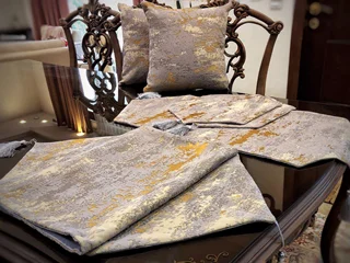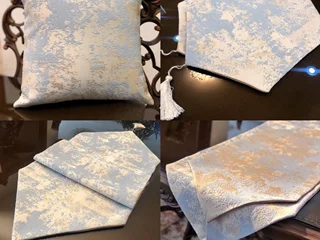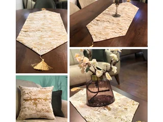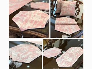 ست سه تکه شامل : یک رانر 90 در 40 و دو عسلی45 در 34 سانتی هست و ست چهار تکه شامل ست سه تکه و یک رانر 135 در 45 سانت میباشد . توجه این ست شامل کوسن نمی باشد
